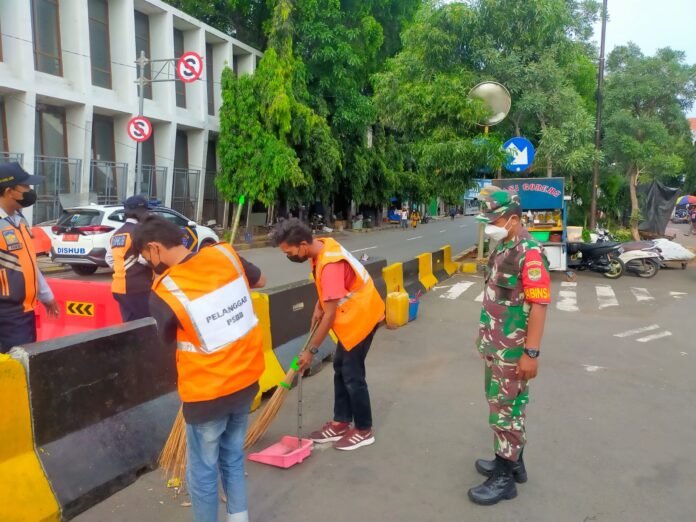 Ungkap Babinsa Sertu Suharno, dalam operasi ini terjaring 22 orang pelanggar protokol kesehatan (Prokes) dan langsung di berikan sanksi sosial dengan membersihkan fasilitas umum sebagai efek jera. Kata nya.