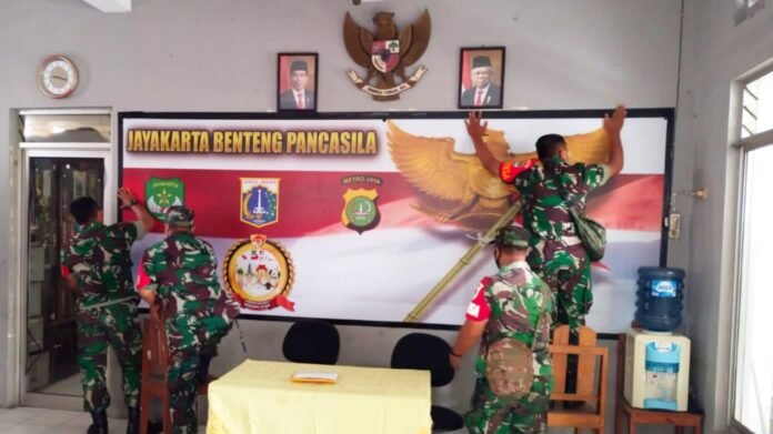Untuk itu, Personil Koramil 03/GP yang dipimpin oleh Bati Tuud Peltu Edi Rustandi melaksanakan karya bakti mempercantik Kampung Pancasila dimulai dari penyiapan dan pembersihan Aula Sekretariat Kampung Pancasila yang berada di Kantor Sekretariat RW.05 Tanjung Duren Utara serta menata Gerbang Kampung Pancasila dan lingkungan di sekitar Kampung Pancasila serta pembuatan mural dan logo Kampung Pancasila yang berada di Jl Salak Timur 7 RT.009/RW.05 Kelurahan Tanjung Duren Utara.