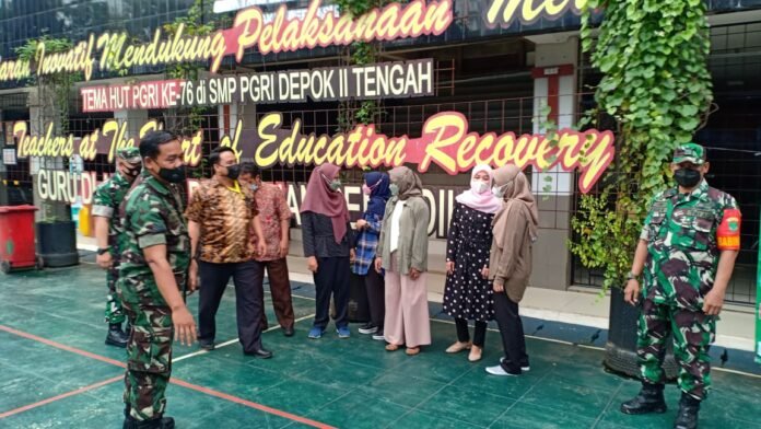 Hadir dalam kegiatan ,Danramil ,Kepala Sekolah ,Wakil kepala sekolah guru SMP PGRI Depok 2
