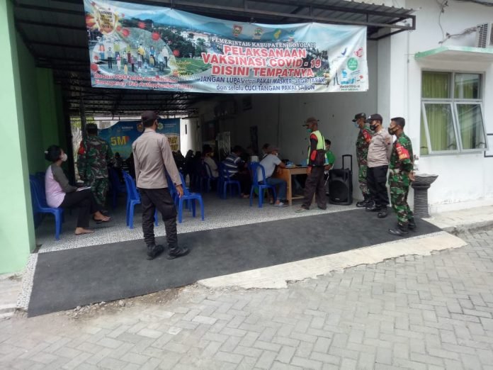 ACTUALNEWS.ID, Boyolali – Dalam rangka mendukung dan mensukseskan program vaksinasi nasional, Koramil jajaran Kodim 0724/Boyolali bersinergi dengan Polsek, Kecamatan dan UPT Puskesmas dalam pelaksanaan vaksinasi di wilayah masing-masing Kali ini, Koramil 19 Juwangi Kodim 0724/Boyolali melalui Danramil 19 Juwangi Lettu Inf Sukarmo bersama anggotanya dan Forkopimcam Juwangi turun langsung mengawal pelaksanaan vaksinasi dosis satu di wilayah Juwangi , Rabu (15/09/2021).