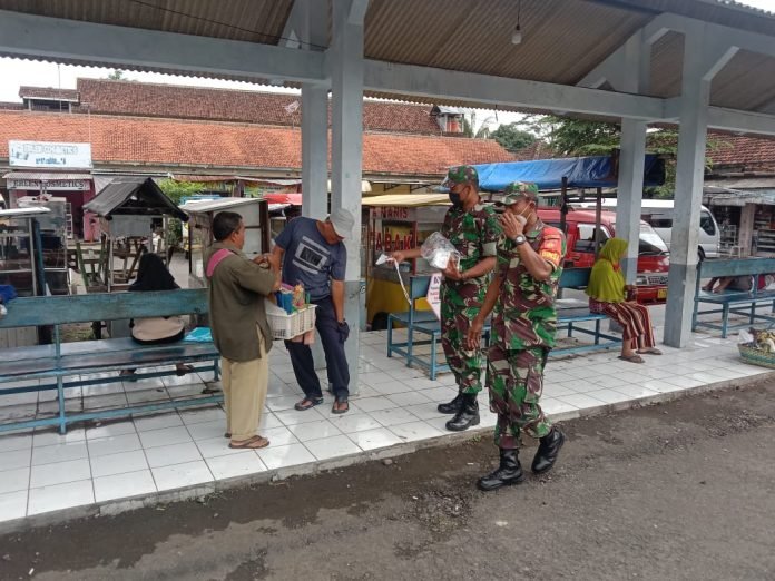 ACTUALNEWS.ID, Boyolali – Untuk mengigatkan dan mendisiplinkan warga masyarakat dalam penerapan protokol kesehatan, Koramil 16/ Karanggede Kodim 0724/ Boyolali melalui tiga anggota yang dipimpin Sertu Kuseri melaksanakan operasi yustisi dan membagikan masker gratis kepada warga yang berada di Terminal Karanggede Desa Kebonan Kecamatan Karanggede Kabupaten Boyolali. Minggu (26/12/2021)