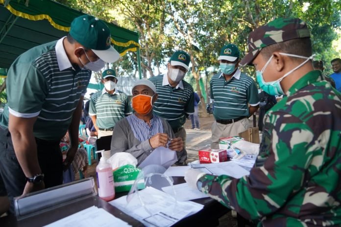 ACTUALNEWS.ID, Jakarta – Soliditas TNI-Polri dalam menjalankan tugas untuk mendukung program pemerintah dalam kegiatan Serbuan Vaksinasi Massal Penanganan Covid-19 di Wilayah Nusa Tenggara Barat (NTB) yang digelar di Desa Sigar Penjalin Kecamatan Pemenang Kabupaten Lombok Utara, Sabtu (3/7/2021).