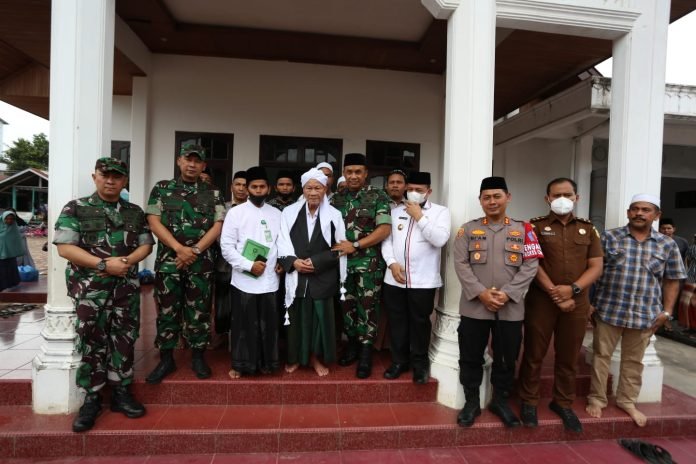 ACTUALNEWS.ID, Pidie – Panglima Kodam Iskandar Muda (Pangdam IM), Mayjen TNI Mohamad Hasan mengunjungi ulama kharismatik Aceh, Tgk H Abu Usman Ali atau lebih kerap disapa Abu Kuta Krueng di kediaman Abu Kuta Krueng, Komplek Darul Munawwarah Gampong Kuta Krueng, Kecamatan Bandar Dua, Kabupaten Pidie Jaya, Jum’at (31/12/2021).