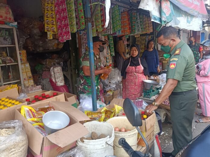 ACTUALNEWS.ID, Sukoharjo (17/06/22) Koramil 08 Baki kembali melaksanakan pengecekan Minyak Goreng dengan turun langsung di kios-kios pedagang di pasar Baki. Hal ini dilaksanakan sebagai upaya untuk memastikan harga eceran tertinggi (HET) minyak goreng, khususnya minyak goreng curah agar tetap stabil, Senin (17/06/22).