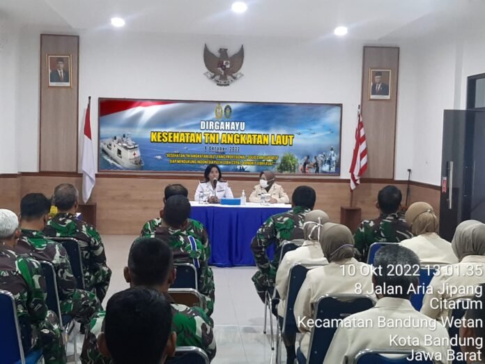 ACTUALNEWS.ID, Bandung,- Komandan Pangkalan TNI Angkatan Laut (Danlanal) Bandung Kolonel Laut (KH/W) Dr. Renny Setiowati, S.T., M.Sc., M.Tr.Hanla., memimpin Syukuran Hari Jadi Kesehatan Angkatan Laut yang ke-74 tahun 2022, bertempat di Aula Lanal Bandung, Jalan Aria Jipang No.8 Kota Bandung, Minggu (10/10/2020).