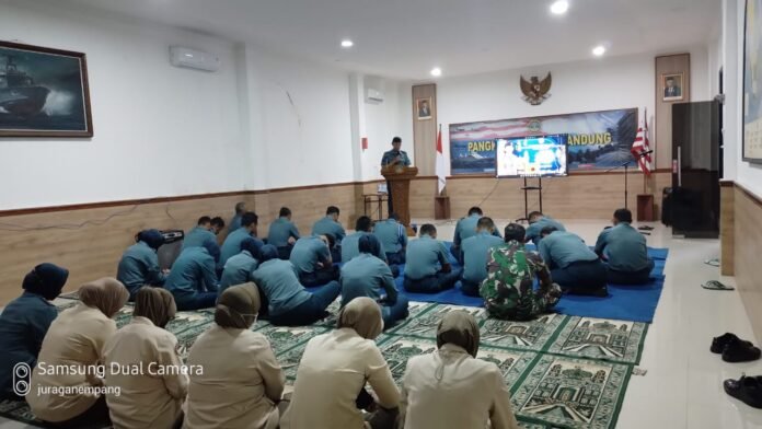 Hadir dalam kegiatan tersebut yakni seluruh Perwira Staf, para Perwira, Bintara, Tamtama dan Pegawai Negeri Sipil (PNS) Lanal Bandung.