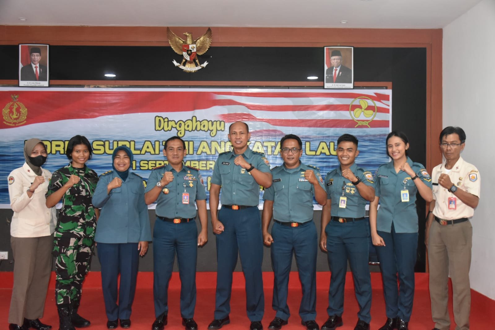 Acara Syukuran HUT Ke-74 Korps Suplai TNI AL diakhiri pemotongan dan penyerahan tumpeng oleh Komandan Lanal Batam kepada perwakilan Korps Suplai serta foto bersama.