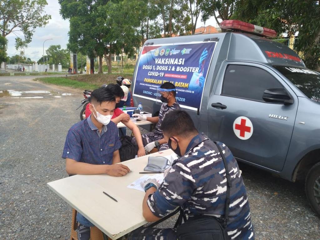 ACTUALNEWS.ID, Batam – Pangkalan TNI Angkatan Laut Batam melaksanakan serbuan vaksinasi Covid-19 jenis Astrazenega 1 dan 2, sinovac dosis 2 dan Booster Astrazeneca, kegiatan tersebut dilaksanakan di kawasan WTB (Welcome To Batam) atau di depan Asrama Haji kota Batam, Kamis (24/02/2022).