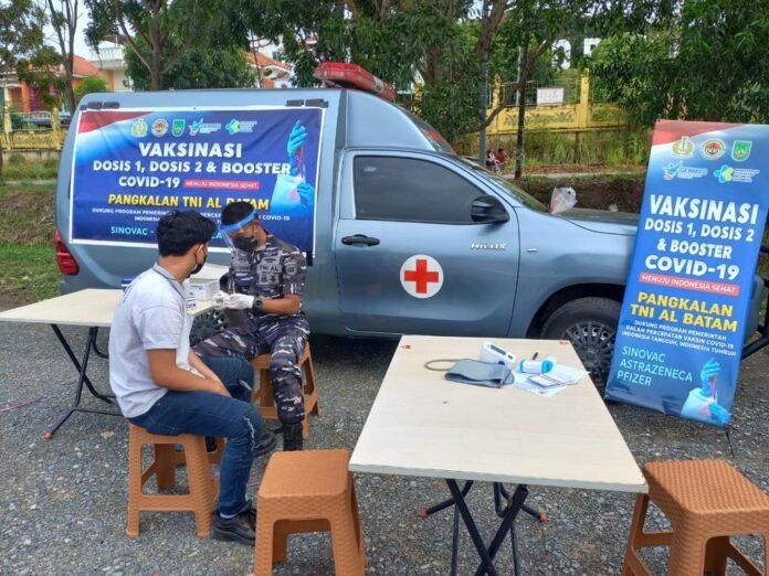 ACTUALNEWS.ID, Batam – Pangkalan TNI Angkatan Laut Batam melaksanakan serbuan vaksinasi Covid-19 jenis Astrazenega 1 dan 2, sinovac dosis 2 dan Booster Astrazeneca, kegiatan tersebut dilaksanakan di kawasan WTB (Welcome To Batam) atau di depan Asrama Haji kota Batam, Kamis (24/02/2022).