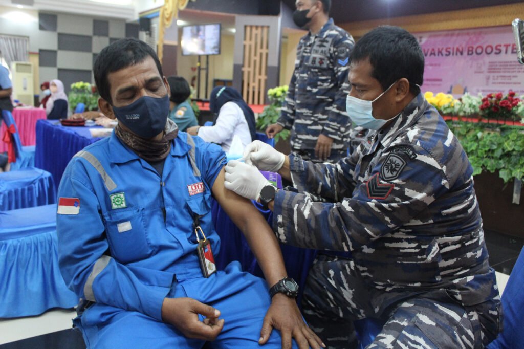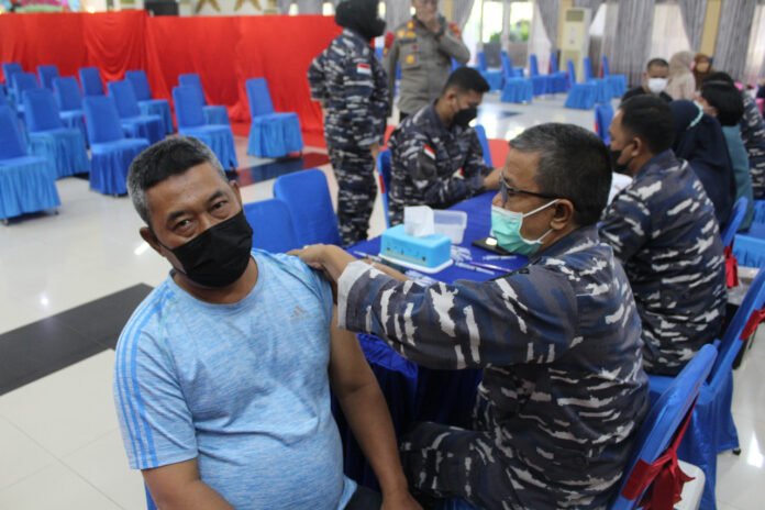 ACTUALNEWS.ID, Dumai – Guna percepatan vaksinasi di wilayah Kota Dumai, Pangkalan TNI Angkatan Laut Dumai melaksanakan serbuan vaksinasi Covid-19. Kegiatan dilaksanakan di Gedung Sasana Mitra PT. Pertamina RU II Dumai, Rabu (16/03/2022).