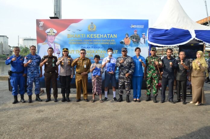 ACTUALNEWS.ID, Dumai,- Komandan Lanal Dumai Kolonel Laut (P) Stanley Lekahena, M.Tr. Hanla., didampingi Ibu Ketua Jalasenastri Cabang 4 Korcab I DJA I Ny. Sandra Stanley melaksanakan Bhakti Kesehatan (Khitanan, Donor Darah diatas KRI, Pembersihan Plak dan Karang Gigi) dalam rangka HUT TNI Angkatan Laut Tahun 2022 yang dipimpin langsung oleh Kepala Staf Angkatan Laut (Kasal) Laksamana TNI Yudo Margono dari KRI Semarang-594 di Perairan Pulau Untung Jawa dan diikuti secara virtual melalui zoom meeting dari Dermaga C Pelindo Dumai, Jalan Datuk Laksamana, Kelurahan Buluh Kasap, Kecamatan Dumai Timur, Selasa (06/09/2022).