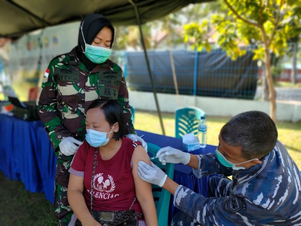 ACTUALNEWS.ID, Dumai,- Dalam rangka mendukung percepatan penanganan Covid-19 di Indonesia, Pangkalan TNI Angkatan Laut Dumai terus melaksanakan serbuan vaksinasi kepada masyarakat dan melaksanakan vaksinasi booster atau dosis ketiga kepada Prajurit dan Keluarga Besar Lanal Dumai. Kali ini serbuan vaksinasi diikuti oleh Personel KRI Kujang-642 yang sedang sandar di Perairan Dumai. Kegiatan dilaksanakan di halaman Balai Pengobatan Lanal Dumai, Jalan Tanjung Jati, Kelurahan Buluh Kasap, Kecamatan Dumai Timur, Kota Dumai, Kamis (03/02/2020).