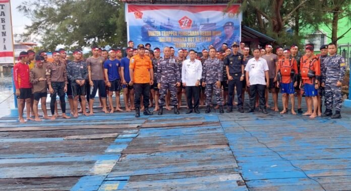ACTUALNEWS.ID, Kepulauan Anambas,- Lanal Tarempa dalam rangka memperingati hari Ulang Tahun ke-77 TNI tahun 2022 ini menggelar kegiatan Water Trappen. Dalam kegiatan tersebut Lanal Tarempa tidak sendirian namun berkolaborasi dengan Koramil jajaran Kodim 0318/Natuna, Lanudal Matak, Polres Kepulauan Anambas, Basarnas/Pos SAR Anambas, BPBD Anambas, HNSI dan Saka Bahari turut serta mengikuti Water Trappen serentak yang dilaksanakan di Pantai Taman Bahari Lanal Tarempa dipimpin oleh Danlanal Tarempa yang diwakili Danlanudal Matak karena dalam waktu yang sama Danlanal Tarempa Letkol Laut (P) Yovan Ardhianto Yusuf, S.E., M.Tr. Opsla., menjadi Inspektur Upacara HUT TNI ke-77 di Lapangan Napoleon Lanal Tarempa, Rabu (05/10/2022).