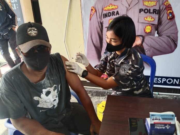 ACTUALNEWS.ID, Babel – Pangkalan TNI AL Bangka Belitung melalui Balai Kesehatan bekerja sama dengan Dinas Kesehatan Kabupaten Bangka, Polsek Belinyu dan Koramil Belinyu kembali melaksanakan serbuan vaksin dosis pertama, kedua dan ketiga kepada masyarakat maritim pada hari kedua di Kantor Polsek dan Koramil Belinyu Kabupaten Bangka, Jum’at (25/02/2022).