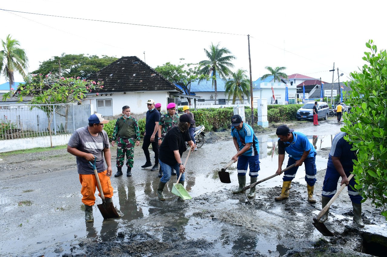 Wakil Komandan Lantamal I Belawan Kolonel Marinir Amir Kasman didampingi Asisten Pembinaan Potensi Maritim (Aspotmar) Lantamal I Kolonel Marinir Maslan Tumanggor turun langsung meninjau serta memimpin prajurit Lantamal I melaksanakan gotong royong bersih-bersih lingkungan tersebut.