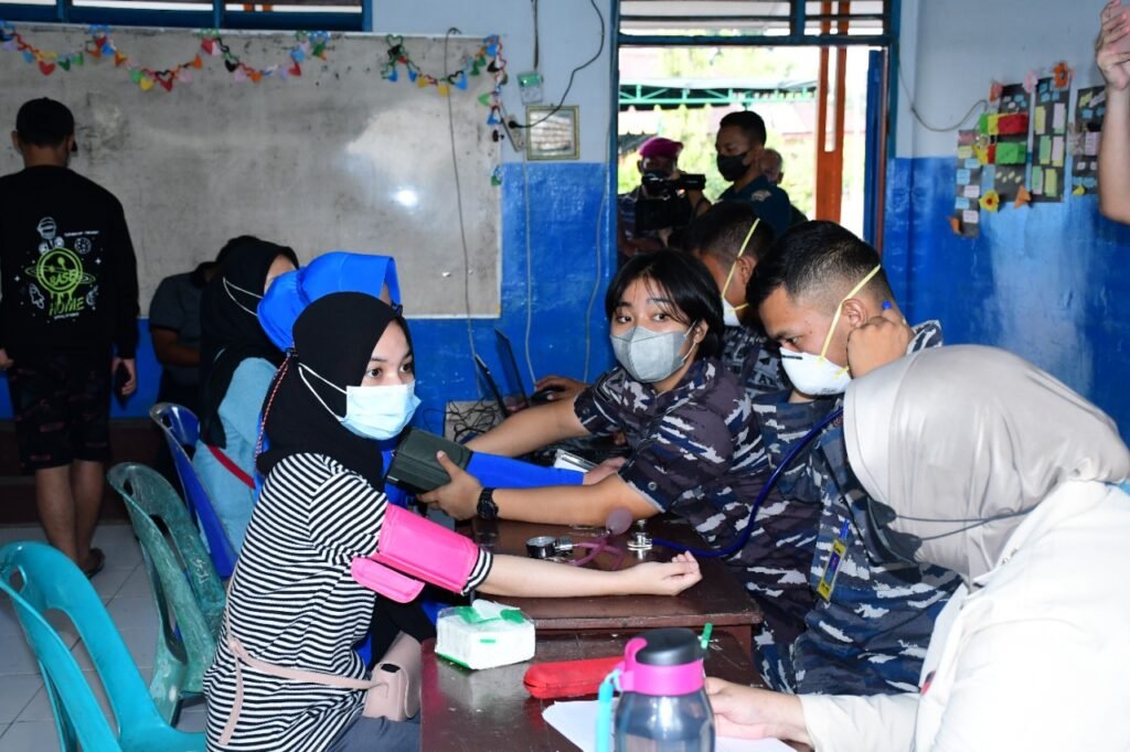 Tenaga Kesehatan (Nakes) dari Dinas Kesehatan Lantamal I, RSAL Komang Makes Belawan menerjunkan dua tim vaksinator tenaga kesehatan serta menargetkan sebanyak 100 orang mendapatkan vaksin setiap harinya.