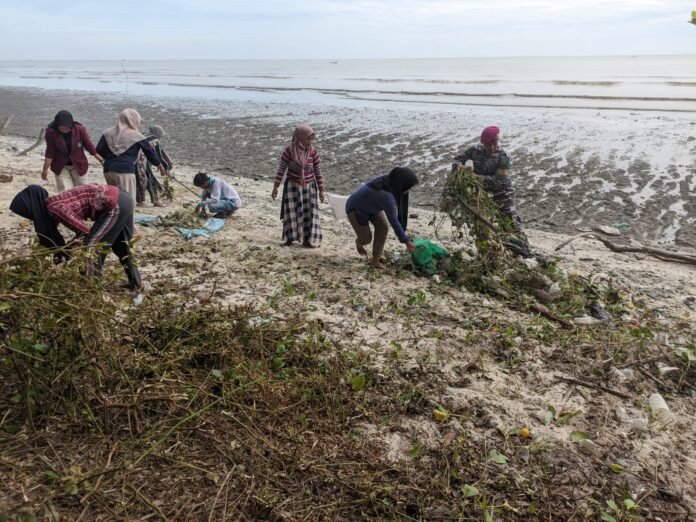 Lestarikan Lingkungan Babinpotmar, TNI AL Lanal TBA Bersama Warga dan Mahasiswa UINSU Bersihkan Pantai Pandang Sinama