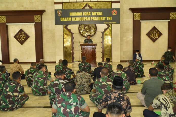 ACTUALNEWS.ID, Bandung – Segenap anggota Makodiklatad melaksanakan peringatan Isra’ Mi’raj Nabi Muhammad SAW 1443 H/2022 M, yang dilaksanakan di Masjid Junudurrahmah Kodiklatad. Kegiatan tersebut dipimpin oleh Wakil Komandan Kodiklatad, Mayjen TNI Kasuri. Jum’at (11/3/2022)