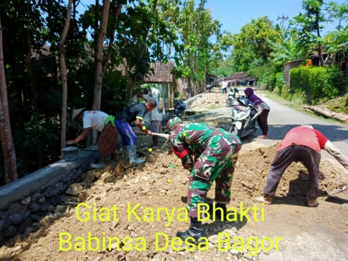 ACTUALNEWS.ID, Sragen,- Begitu dekatnya hubungan dengan masyarakat desa Bagor, Serka Totok Babinsa Desa Bagor Koramil 16/Miri Kodim 0725/Sragen melaksanakan Kegiatan Karya Bhakti pengurukan jalan bersama Warga Masyarakat Dk. Genengsari RT. 08. Ds. Bagor Kec. Miri, Rabu ( 29/03/2023 )