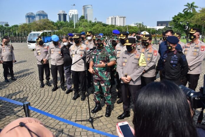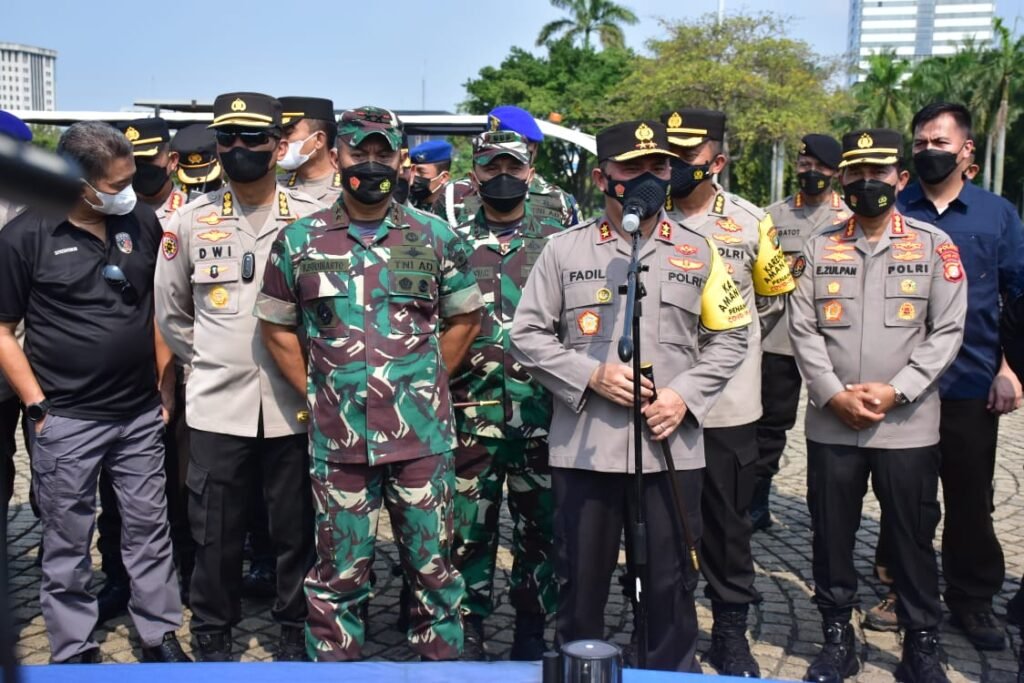 ACTUALNEWS.ID, Jakarta – Pangdam Jaya Mayjen TNI Untung Budiharto bersama Kapolda Metro Jaya Irjen Pol M Fadil Imran memimpin apel gabungan pengamanan aksi unjuk rasa hari ini di Silang Monas, Gambir, Jakarta Pusat pada. Senin (11/4/2022).
