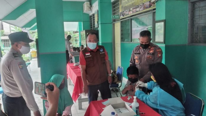 ACTUALNEWS.ID, Jakarta – Untuk mendukung capaian Herd Immunity pada anak usia 6 – 11 tahun dalam penanganan covid-19, Polres Metro Jakarta Barat berkolaborasi dengan Pemerintahan Kecamatan Grogol Petamburan mengadakan Vaksniasi Merdeka, Sabtu, 15/1/2022 di SDN 03 Komp Pakuon, Rw 09 Kelurahan Jelambar Baru.
