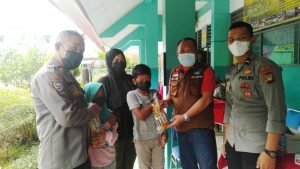 “Senang ya sudah divaksin, eh…. eh… dapat bingkisan dari pak polisi. Trima kasih pak polisi atas bingkisannya,” ungkapnya.