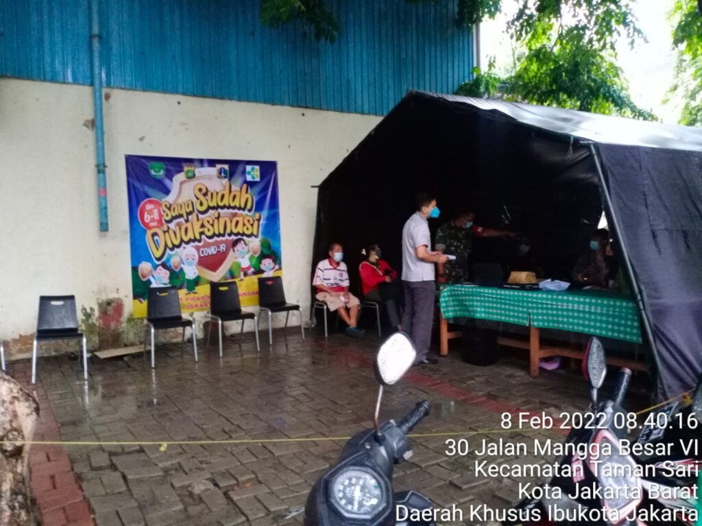 ACTUALNEWS.ID, Jakarta Barat – Kodim 0503/JB, Koramil 01/Tamansari. Serbuan vaksinasi Kodim 0503/Jakarta barat yang di laksanakan Koramil 01/Tamansari di halaman stadion sepak bola tamansari, Jalan Mangga Besar VI Utara, meskipun di guyur hujan dari pagi, namun tetap berjalan seperti hari-hari biasanya.