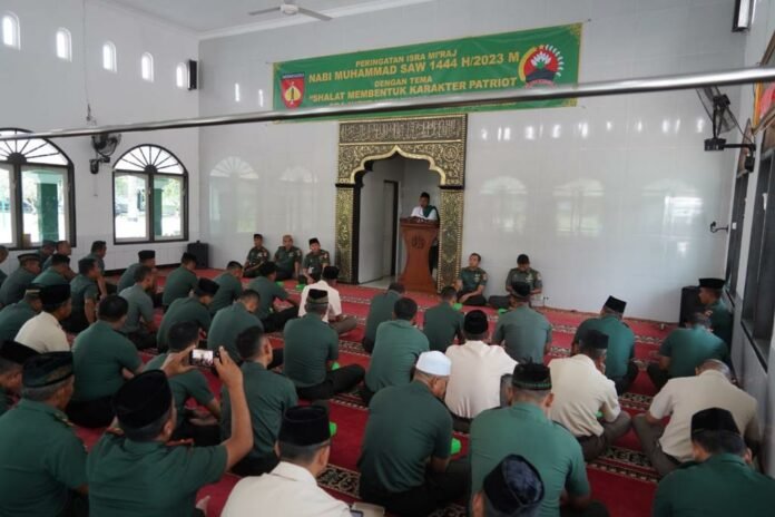 Hal itu, ditegaskan Danrem 071/Wijayakusuma Kolonel Inf Yudha Airlangga, S E , dalam sambutannya yang dibacakan Kasrem 071/Wijayakusuma Letkol Inf Candra, S.E., M.I.Pol., saat memperingati Isra Mi’raj Nabi Muhammad SAW di Masjid Wijayakusuma Makorem 071/Wijayakusuma Sokaraja, Banyumas. Rabu (8/3/2023).