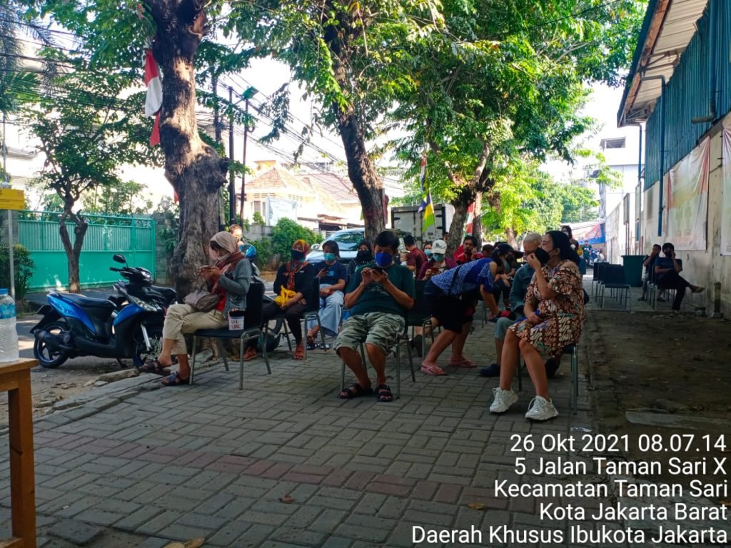 Giat serbuan vaksinasi TNI yang setiap hari nya dilaksanakan di Stadion sepak bola Tamansari Jalan Mangga Besar VI Utara, Rt. 08/01 ini dengan 1 Team Picare yang di pimpin Letda Kav Miftakhul Khoeri.