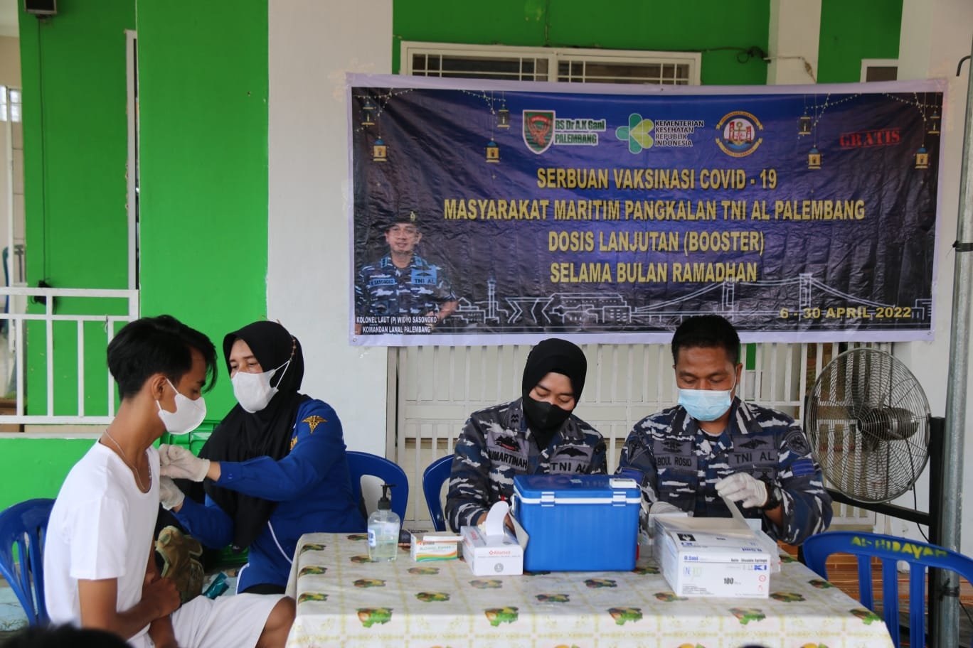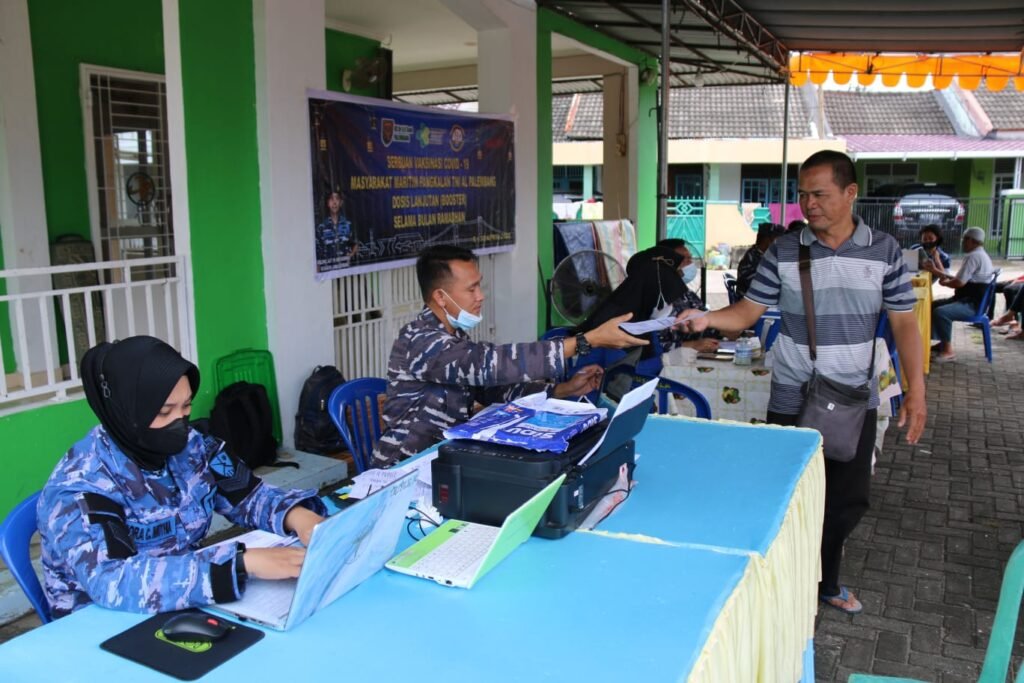 ACTUALNEWS.ID, Palembang – Lanal Palembang menggelar Serbuan Vaksinasi Covid-19 Dosis 1, 2 dan Dosis lanjutan/Booster kepada warga Kota Palembang yang dilaksanakan di dua titik yakni, di Perumahan Taman Sari Kenten 2 dan di Stasiun Kereta Api Kertapati Palembang, Jumat (22/4/2022).