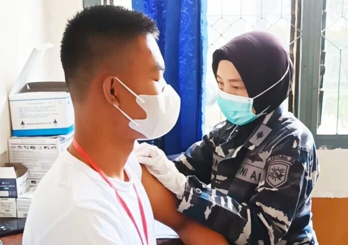 Nakes Lanal Palembang Terus Berikan Pelayanan Vaksinasi Covid-19 Bagi Masyarakat Maritim