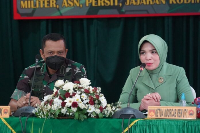 ACTUALNEWS.ID, Cilacap – Demikian penegasan Ketua Persit Kartika Chandra Kirana Koorcab Rem 071 PD IV/Diponegoro Ny. Tania Yudha Airlangga dalam tatap mukanya dengan segenap anggota Persit Kartika Chandra Kirana Cabang XVIII Kodim 0703/Cilacap, saat mendampingi kunjungan kerja Danrem 071/Wijayakusuma Kolonel Inf Yudha Airlangga di Kodim 0703/Cilacap, Kamis (7/4/2022).