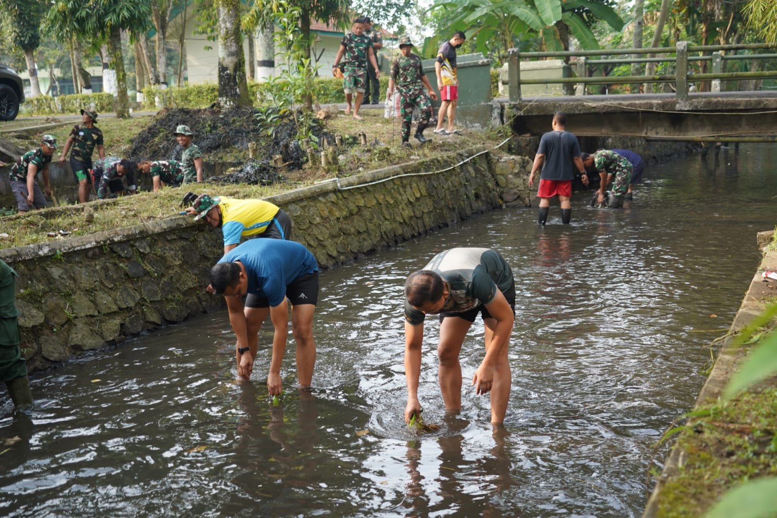 Dengan antusias, Danrem beserta segenap staf walaupun berada di aliran kali yang kotor dan acapkali riak-riak limbah terbawa arus menuju berkumpulnya pimpinan dan staf Makorem 071/Wijayakusuma, tidak menjadikan para pejabat ini risih ataupun jijik berendam di air yang kotor dan keruh karena sedang dibersihkan aliran sungainya. Mereka tetap tidak bergeming, dan tidak bergeser sejengkal pun dari air ke tempat yang lebih aman dan baik. Mereka tetap semangat dan antusias membicarakan apa yang ingin satuan Makorem 071/Wijayakusuma ini menjadi lebih baik lagi dalam menyongsong tugas-tugas kedepannya.