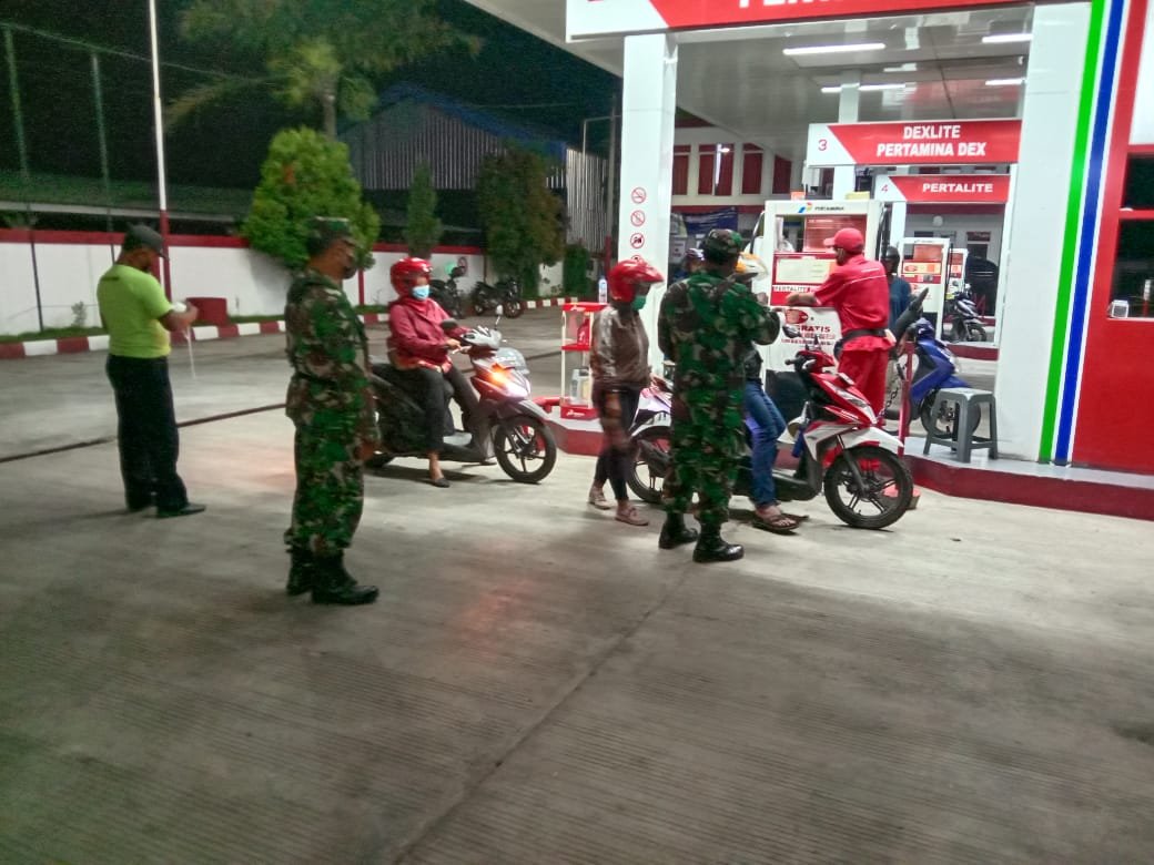 Serma Toni Martin menyampaikan informasi sesuai protokoler pencegahan penyebaran covid-19 antara lain edukasi kepada masyrakat yang akan mengisi bahan bakar di SPBBU tersebut khususnya bagi masyarakat yang tidak menggunakan masker saat mengendarai kendaraan.