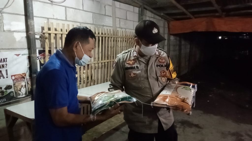 Operasi Simpatik: Polsek Tambelang Membagi Sembako PPKM Level 4 bagi Pedagang Kaki Lima
