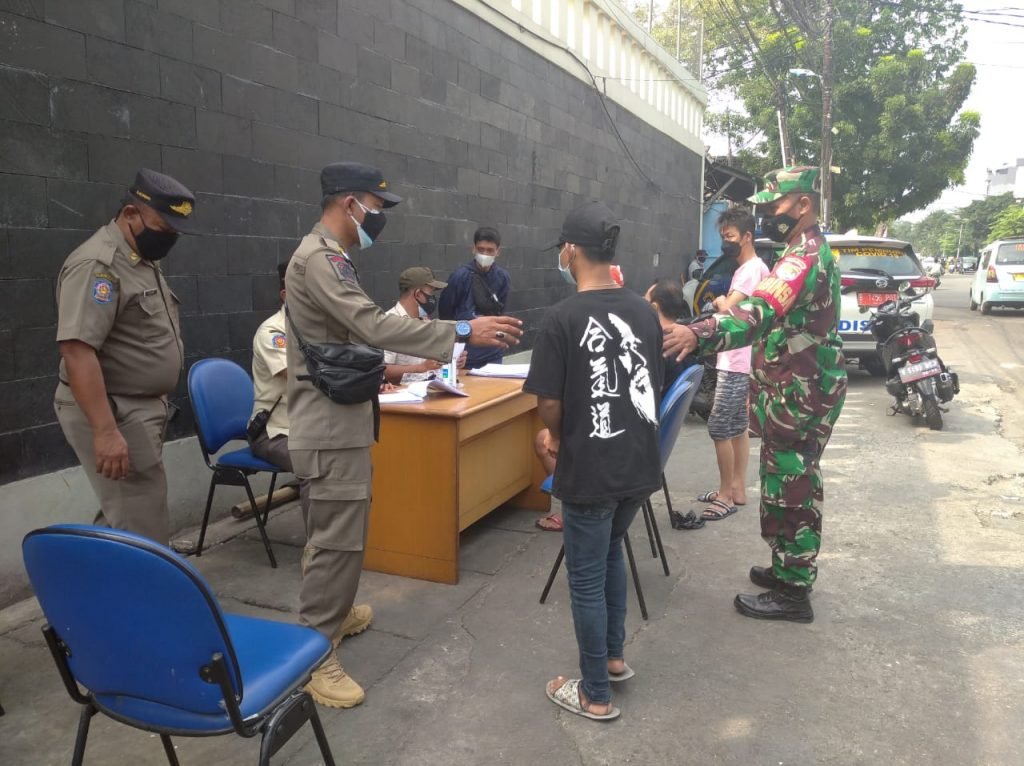 ACTUALNEWS.ID,Jakarta -Babinsa Koramil 02/TB Serka Nurhasan mewakili Danramil 02/TB Kapten Inf Aja Suarja bersama Tiga Pilar Kecamatan Tambora kembali menggelar operasi yustisi penegakan disiplin protokol kesehatan terhadap warga masyarakat. Kali ini operas berlangsung di depan Sekolah Bhinneka Tunggal Ika Jalan KH Moh Mansyur 222 A RT 10/05 Kelurahan Tanah Sereal Kecamatan Tambora Jakarta Barat.Rabu (7/7)