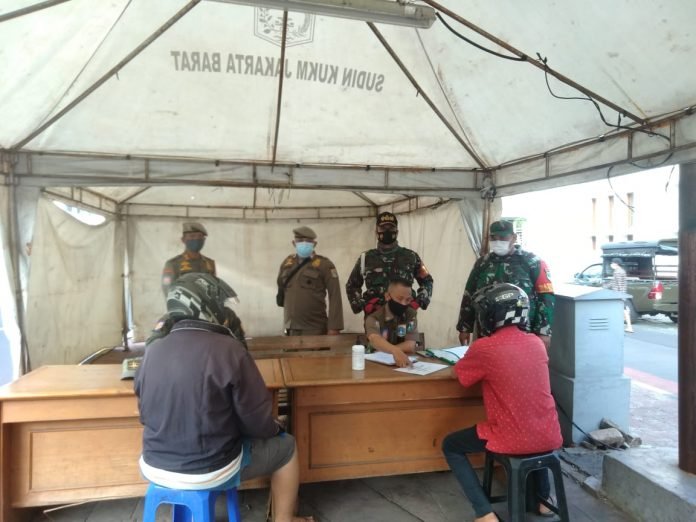 ACTUALNEWS.ID Jakarta -Koramil 01/TS Serma Ery. H semakin intens melaksanakan pencegahan penyebaran Covid-19. Salah satu bentuk pencegahan yang dilakukan yakni Operasi Yustisi penegakan disiplin menggunakan masker di Jl. Kunir Kelurahan Pinangsia Kecamatan Tamansari Jakarta Barat.Minggu (27/6).