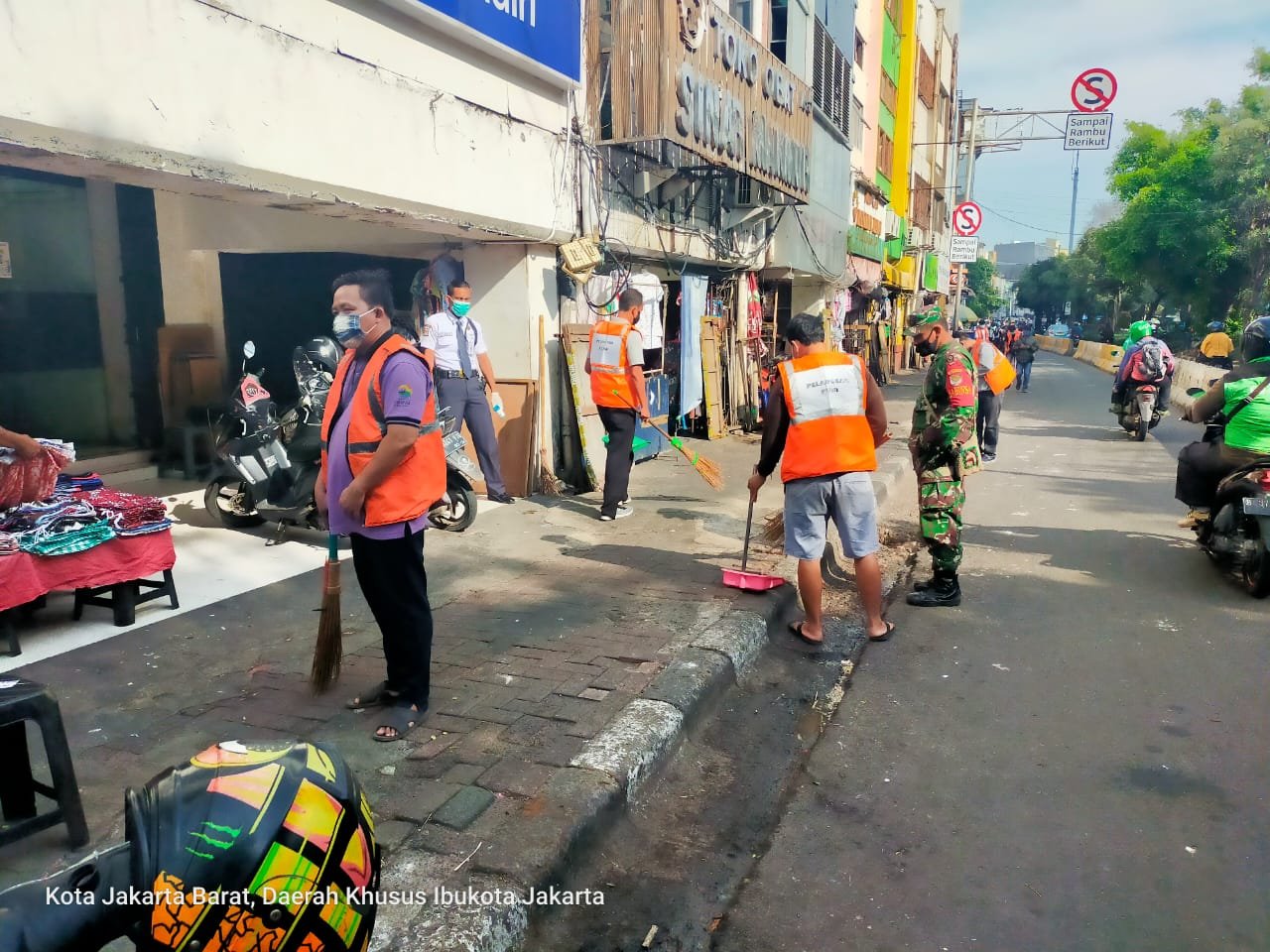 Turut Hadir Babinsa Koramil 01/TS Serda Abdi Amrizal, BKO Arhanud-1/Kostrad 5 personil dipimpin Kopda Purwito, Polsek Tamansari Aiptu Supriyanto, Satpol PP Eprianda dan Dishub lrwan Efendi.