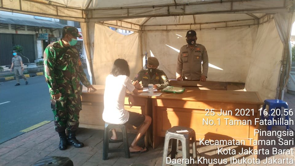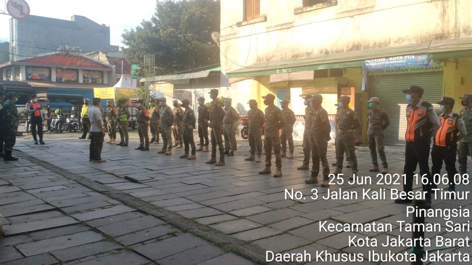 Kegiatan apel dipimpin Kasatpol PP Kecamatan Tamansari Asmar Panjaitan ,Usai apel kegiatan dilanjutkan melaksanakan Operasi yustisi yang digelar di JL.Kunir (Cagar Budaya Dan Tempat Wisata Kota Tua) ,RW 06 Kelurahan Pinangsia Kecamatan Tamansari Jakarta Barat dengan menurunkan 39 personil gabungan dari Koramil 01/TS 2 Pers dioimpin Serda ApriantoPolsek 7 Pers dipimpin Iptu Suroto,Satpol PP 25 Pers dipimpin Asmar Panjaitan dan Dishub 5 pers dipimpin Aceng