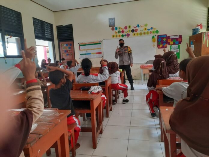 Polres Kepulauan Seribu melalui Bhabinkamtibmas Pulau Selatan, Polsek Kepulauan Seribu Selatan Briptu Tulus melaksanakan kegiatan Police Goes to School di SDN 02 Pulau Lancang, Rabu (11/01/2023).