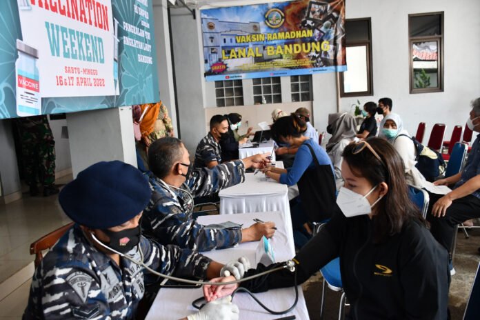 ACTUALNEWS.ID, Bandung – Pangkalan TNI Angkatan Laut dalam hal ini Lanal Bandung kembali melaksanakan serbuan Vaksinasi Booster kepada masyarakat maritim yang berada di wilayah kerja Lanal Bandung dengan tema “Lengkapi Vaksin, Agar Mudik Tenang, Lebaran Aman”, bertempat di Markas Komando (Mako) Lanal Bandung, Jalan Ariajipang No. 8 Kota Bandung, Sabtu (16/04/2022).