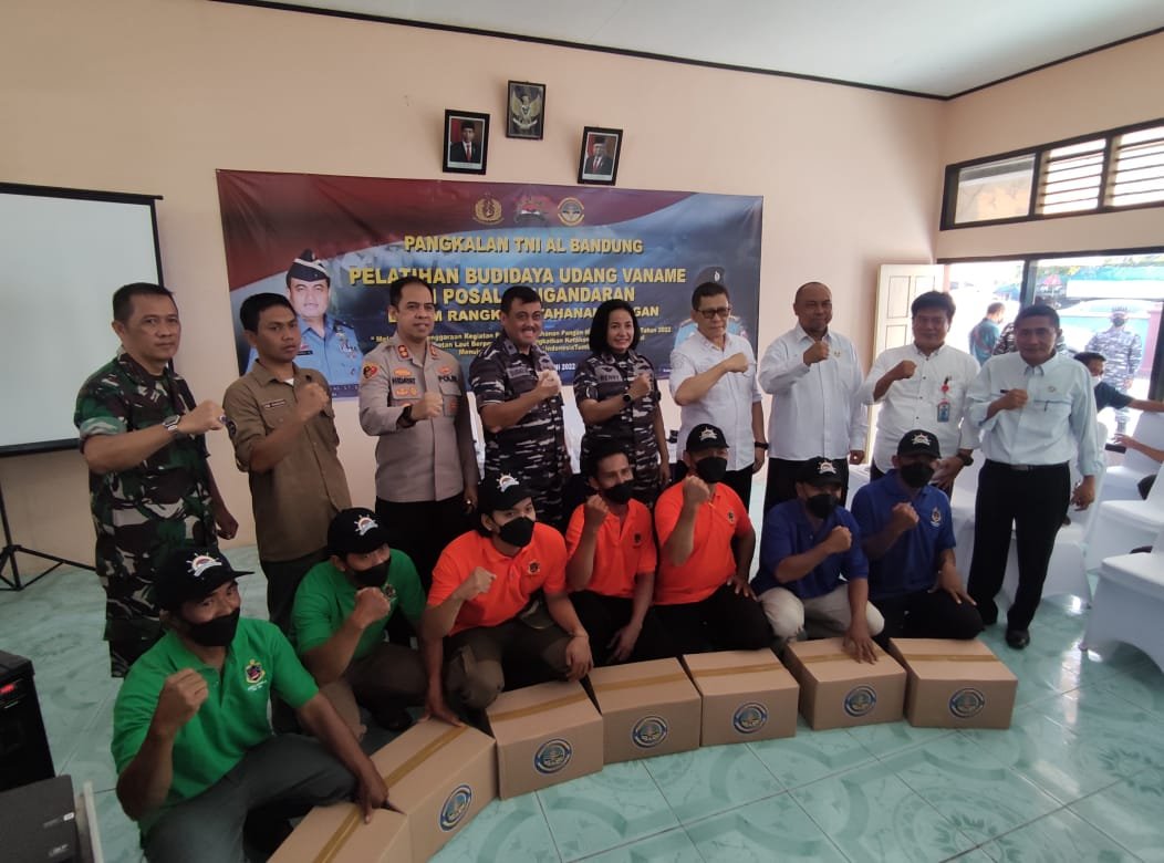 ”Melalui Penyelenggaraan Pelatihan Ketahanan Pangan Masyarakat Pesisir TA. 2022, TNI AL berperan aktif meningkatkan Ketahanan Pangan Nasional menuju Indonesia Tangguh Indonesia Tumbuh”, besarnya potensi sumber daya alam laut tidak akan bermanfaat tanpa didukung oleh pengetahuan dalam pengelolaan, pemanfaatan dan pelestariannya, serta kesadaran dan komitmen yang tinggi pada seluruh elemen masyarakat dalam menangani kekayaan laut yang kita miliki. Untuk itu, kita harus memiliki komitmen bahwa laut dapat mensejahterakan ekonomi rakyat dan kita semua harus mendukung program pemerintah dalam mencukupi pemenuhan kebutuhan pangan salah satunya melalui budidaya udang Vaname.