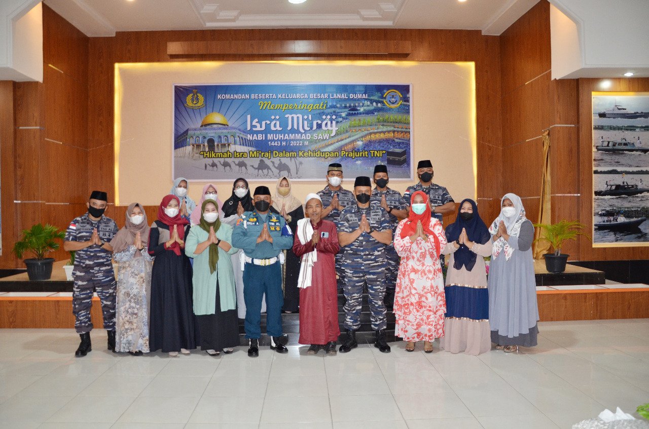ACTUALNEWS.ID, Dumai – Guna meningkatkan kualitas keimanan dan meneladani perilaku Nabi Muhammad SAW, Pangkalan TNI Angkatan Laut Dumai melaksanakan peringatan Hari Isra Mi’raj Nabi Muhammad SAW yang dipimpin oleh Ustadz KH. Rahmat Afifi, Lc dengan tema “Hikmah Isra’ Mi’raj Dalam Kehidupan Prajurit TNI”. Kegiatan dilaksanakan di Gedung Wijaya Kusuma Mako Lanal Dumai, Jalan Yos Sudarso, No. 1 Kelurahan Buluh Kasap, Kecamatan Dumai Timur Kota Dumai. Jum’at (04/03/2022).