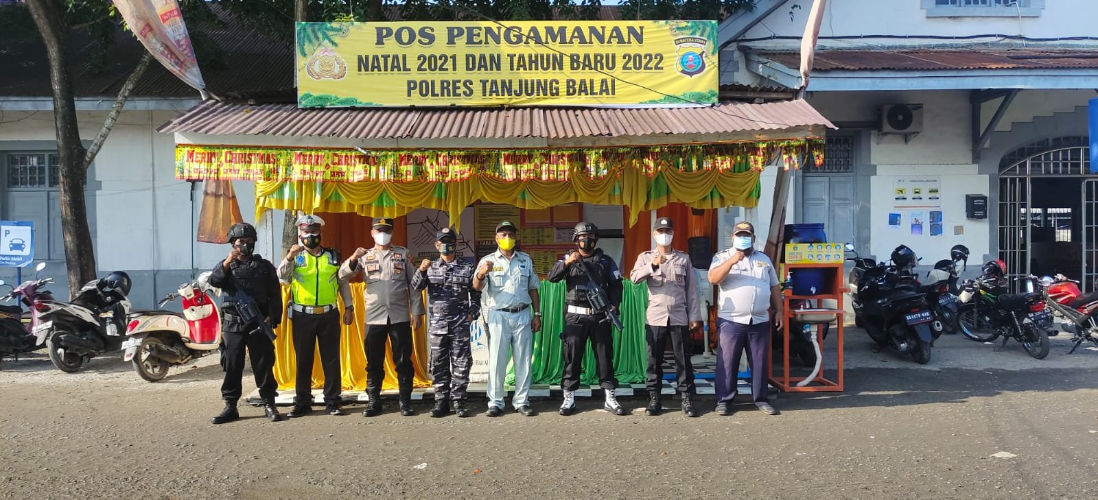 Prajurit Lanal Tanjung Balai Asahan yang tergabung bersama Instansi Polres, Kodim, Dinas Kesehatan dan yang instansi lainnya bersiaga di Pospam Natal dan Tahun Baru 2022 di beberapa titik diantaranya Pospam 1 di Batu Tujuh, Pospam 2 di Stasiun Kereta Api, dan Pospam 3 di Jembatan Titi Tabayang.