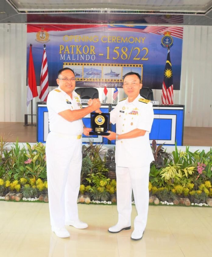 ACTUALNEWS.ID, TNI AL, Lantamal I Belawan,- Panglima Komando Armada Republik Indonesia (Pangkoarmada RI) Laksamana Madya TNI Heru Kusmanto diwakili Komandan Lantamal I Belawan Laksamana Pertama TNI Johanes Djanarko Wibowo membuka Patroli Terkordinasi Malaysia Indonesia (Patkor Malindo) yang ke-158 tahun 2022, di Gedung OB Syaaf Mako Lantamal I, Jalan Serma Hanafiah No.1, Belawan, Jumat (02/12/2022).