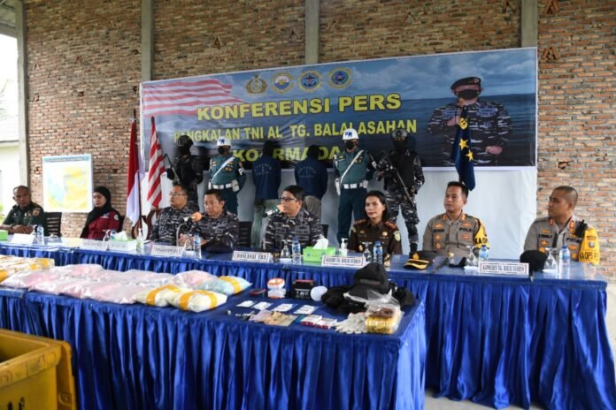 Dalam konferensi pers Panglima Koarmada I Laksamana Muda TNI Arsyad Abdullah, S.E., M.A.P., mengatakan, “Tertangkapnya penyeludupan narkoba berawal dari informasi Intelijen dilapangan bahwa akan masuk penyelundupan narkoba jenis sabu-sabu dan ekstasi dari Malaysia menuju Tanjungbalai. Tim F1QR Lanal Tanjung Balai Asahan menggunakan sarana Patkamla SSG 1-1-47 berhasil penyergap 1 buah sampan kaluk yang diawaki 2 (dua) orang warga Tanjungbalai berinisial S (44 tahun), dan RS (40 tahun), keduanya beralamat di Simpang Sungai Merbau Kecamatan Teluk Nibung Tanjungbalai, didapati membawa narkoba diduga jenis sabu-sabu sebanyak 29 (Dua Puluh Sembilan) bungkus dalam kemasan teh china dengan berat keseluruhan 20,171 kilogram dan 12 (Dua Belas) bungkus ekstasi dengan rincian, 9 bungkus warna merah muda, 2 bungkus warna putih, dan 1 bungkus warna biru, dengan jumlah keseluruhan 60.000 butir (estimasi) yang disimpan dalam fiber ikan warna kuning.