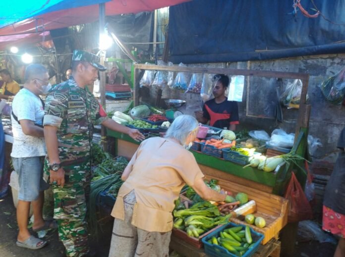 Dalam giatnya Serka Nurhasan turun langsung ke pasar dengan melakukan pendataan harga kebutuhan bahan bahan pokok di Pasar impres
