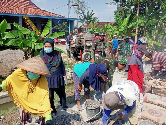 ACTUALNEWS.ID, Sukoharjo – (30/09/21) Tentara Manunggal Membangun Desa-TMMD Reguler ke-112 Kodim 0726/Sukoharjo di Dusun Siblarak Desa Majasto Kecamatan Tawangsari Kabupaten Sukoharjo hingga Kamis (30/9/2021) sudah berhasil melakukan pengerjaan pengecoran jalan Rabat Beton sepanjang kurang lebih 850 meter dari target 1000 meter dengan lebar 3 meter dan tebal 15 Cm.