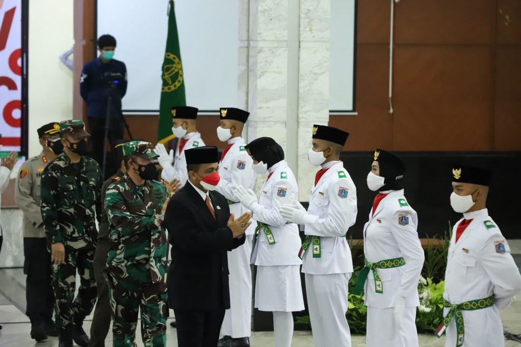 ACTUALNEWS.ID, Kodim 0505/Jakarta timur – Wali Kota Administrasi Jakarta timur M. Anwar bersama Forkopimko mengukuhkan Pasukan Pengibar Bendera Merah Putih (Paskibra) Kota Administrasi Jakarta Timur Tahun 2021, di Ruang Serbaguna Blok C Kantor Walikota Jakarta Timur, Senin (16/08/2021).