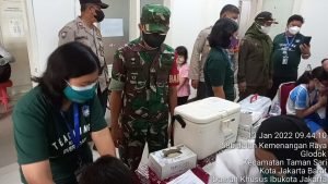 ACTUALNEWS.ID, Jakarta Barat – Dua Babinsa Koramil 01/Tamansari Kodim 0503/JB, Serda Abdul Madi dan Serda Amramus melaksanakan monitoring kegiatan serbuan vaksinasi di dua titik lokasi di Kecamatan tamansari, Jakarta barat. Kamis (13/01)